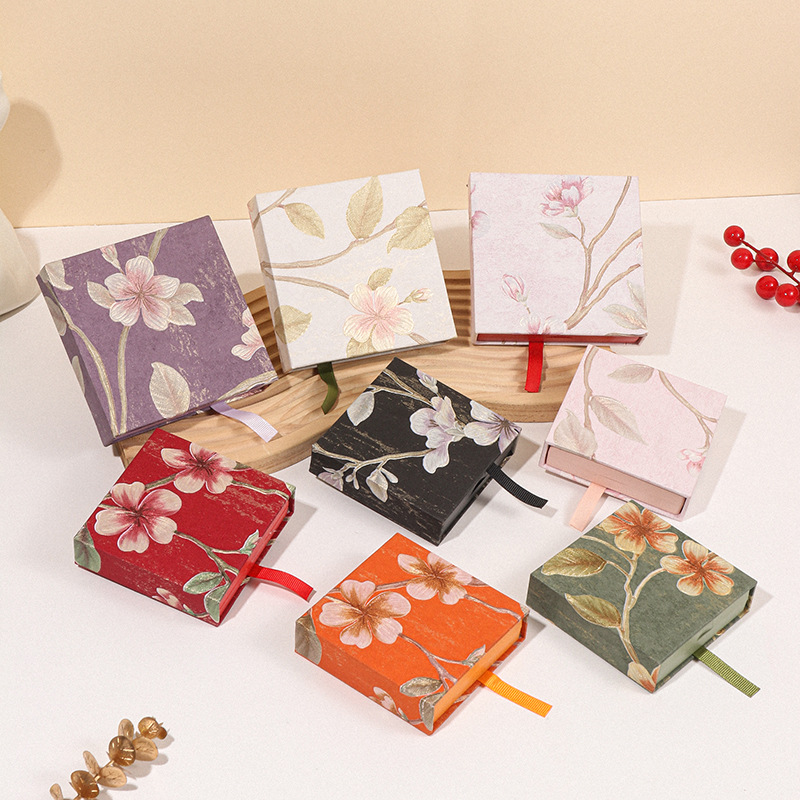 New Chinese style flower pull-out pe film jewelry box anti-oxidation film suspension box embossed bracelet box wholesale