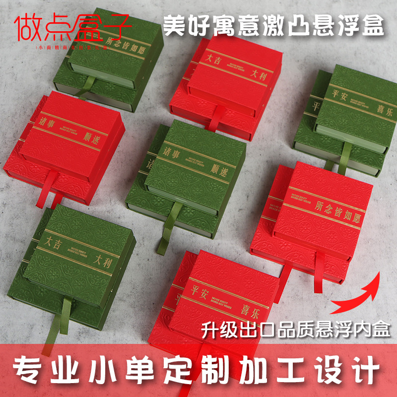 Prayer embossed pull-out box bracelet box dark green bracelet packaging box anti-oxidation high-grade jewelry pe suspension box