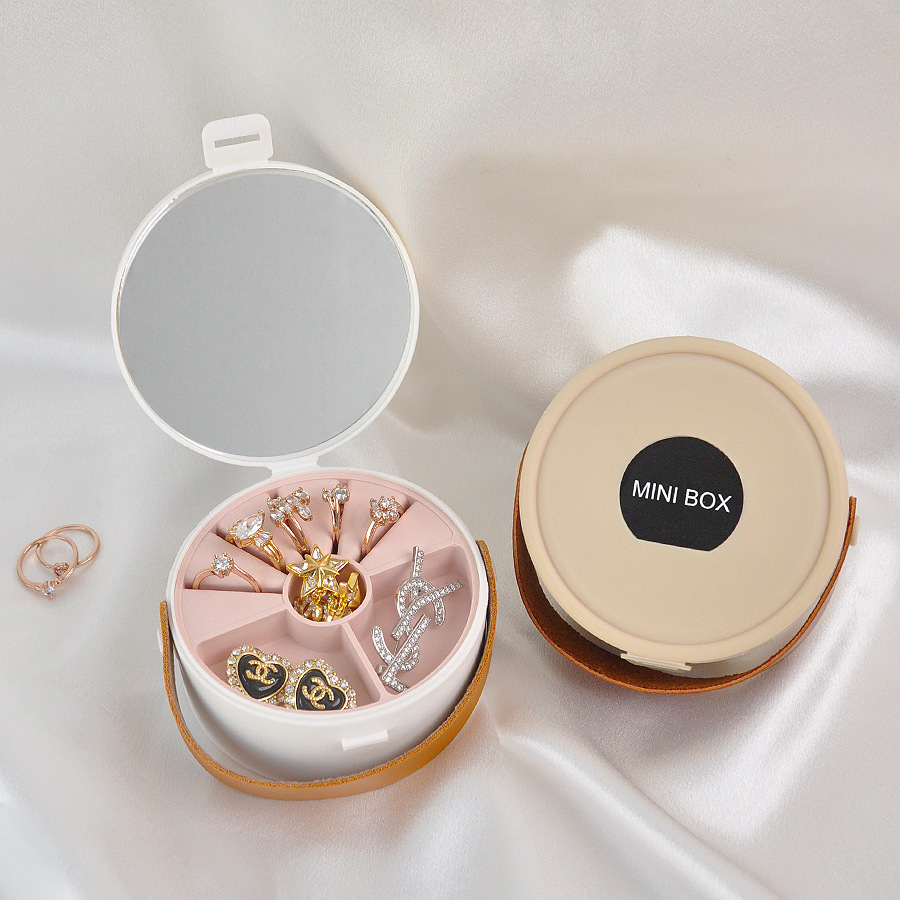 Rotating Earring Jewelry Box Multi-Layer Earring Storage Box Small Exquisite Earrings Necklace Jewelry Rack with Mirror Dust Box