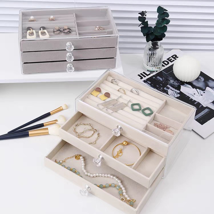 Transparent Acrylic Jewelry Box Jewelry Ring Bracelet Jewelry Box Large Capacity Anti-Oxidation Drawer Three-Layer Storage Box