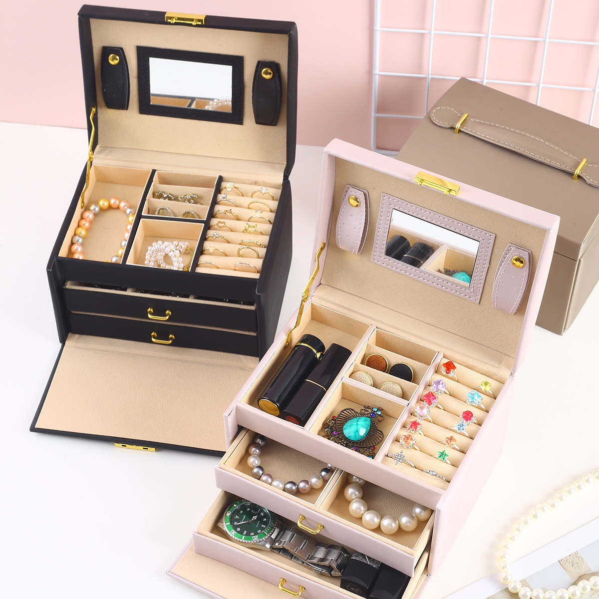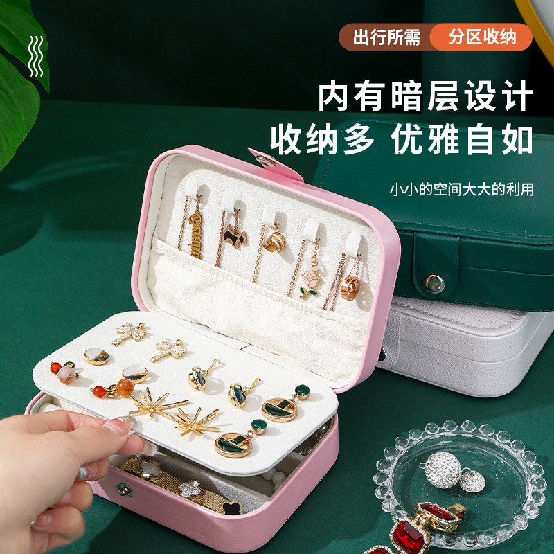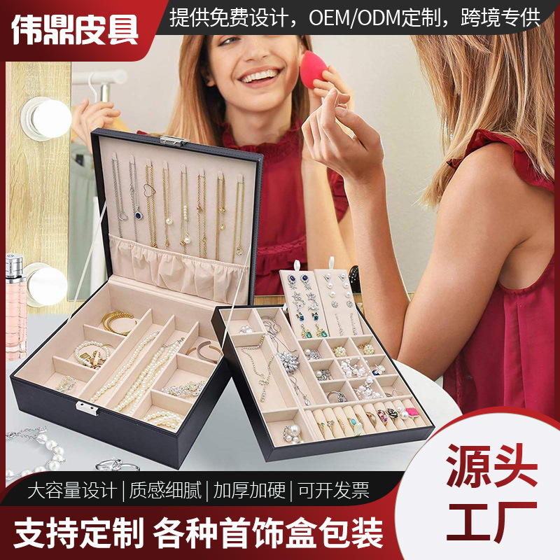 Casual Pu Leather Convenient Jewelry Box Double-Layer Anti-Oxidation Large-Capacity Jewelry Box Earrings Ring Storage Box