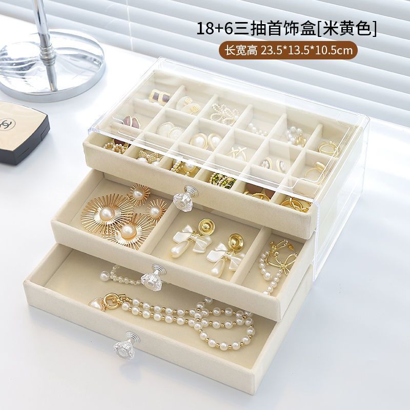 Household High-grade Ring Earrings Necklace Bracelet Jewelry Box Drawer Type Dust-proof and Oxidation-proof Large Capacity Storage Box