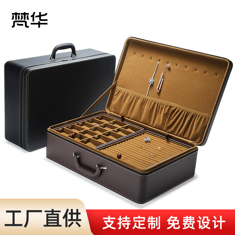 Factory Direct Supply Large Capacity Jewelry Storage Box Portable Ring Necklace Bracelet Set Storage Suitcase First Jewelry