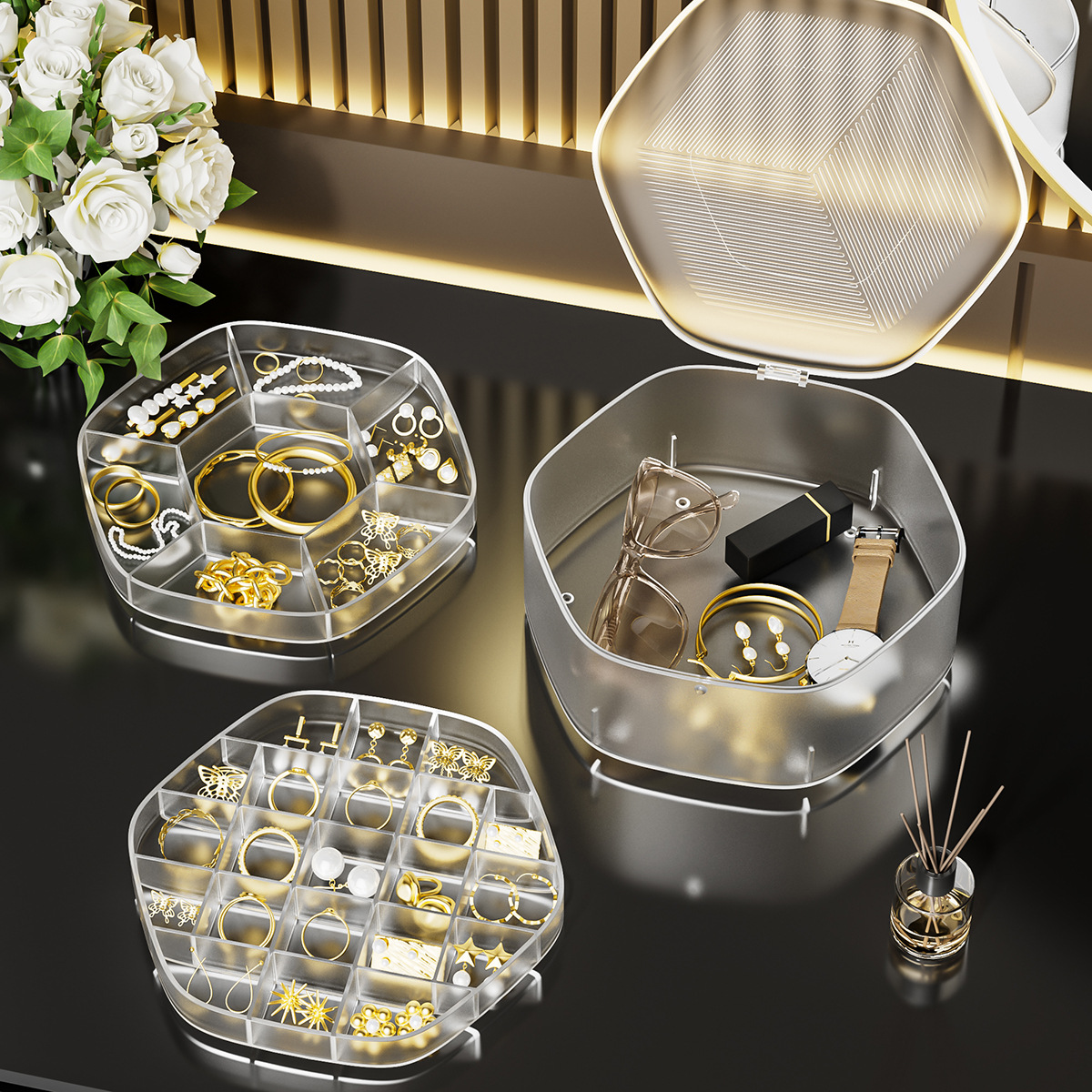 Transparent Jewelry Storage Box Earrings Earrings Necklace Bracelet Display Stand Acrylic Dust-Proof and Anti-Oxidation Jewelry Box