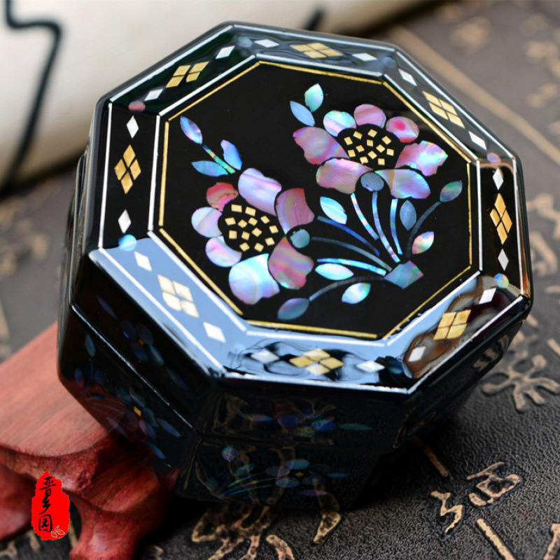 Polished Lacquerware, Mother-Of-Pearl Shell Inlaid Jewelry Box, Rouge Box, Necklace Box, Ring Box, Costume Drama Props
