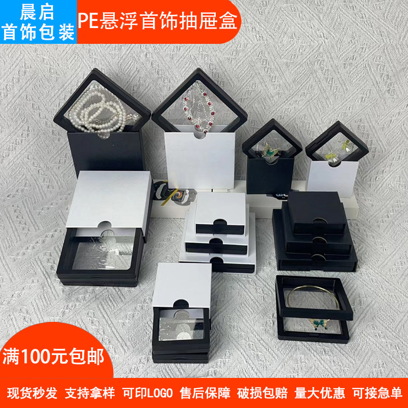 Internet celebrity dustproof anti-oxidation PE film suspension drawer box ring jewelry storage box jewelry packaging box gift box