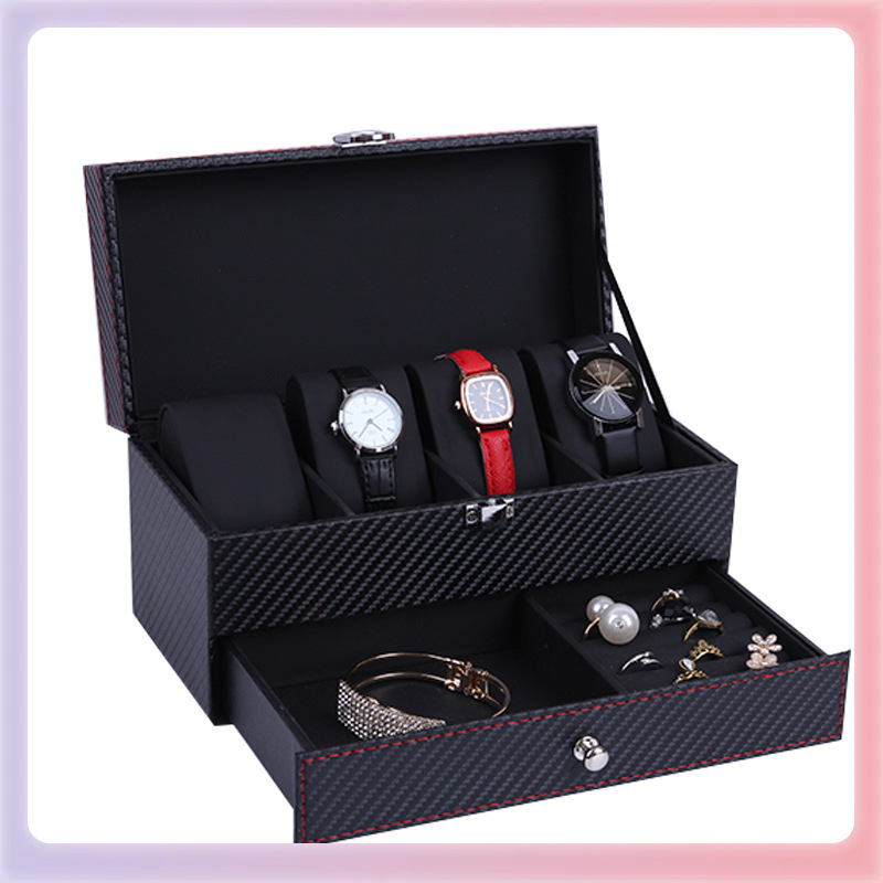 Carbon fiber pattern multifunctional jewelry storage box double layer exquisite jewelry anti-oxidation watch bracelet box manufacturers in stock