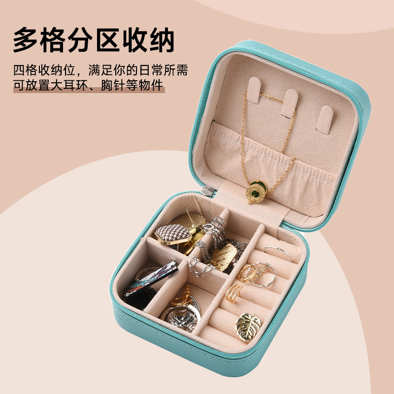 Zipper Jewelry Box Ring Necklace Packaging Box Anti-Oxidation Hand Jewelry Leather Storage Box Leather Storage Box