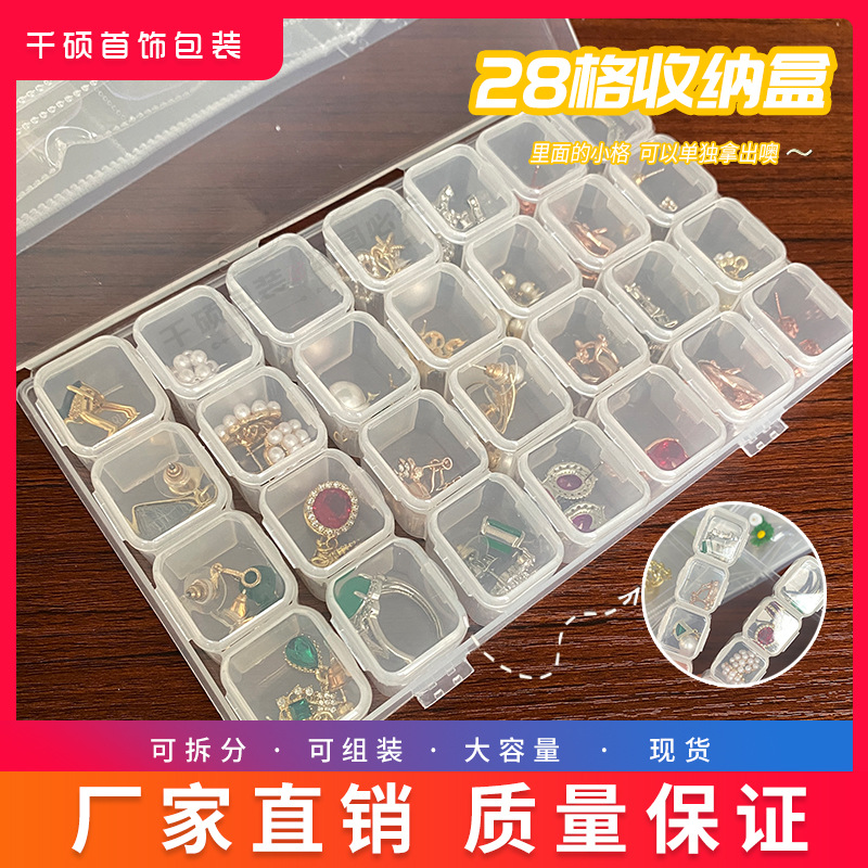 Portable 28 Transparent Jewelry Box Pink Blue Detachable Earring Necklace Ring Storage Box Anti-oxidation