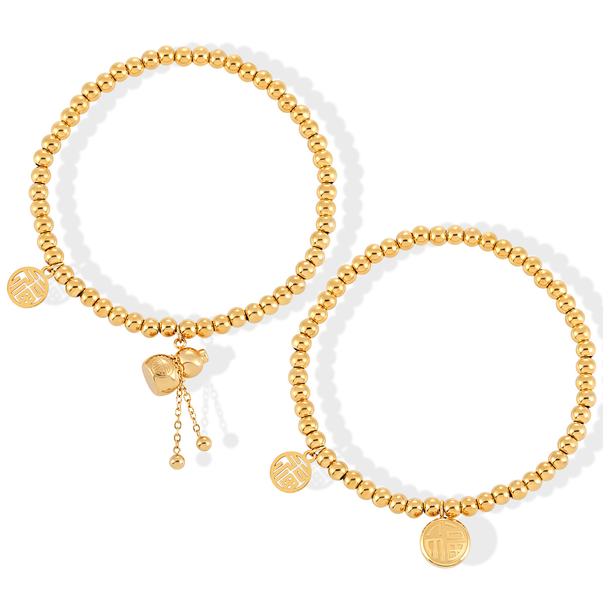 National style Fuxi bead bracelet tassel gourd lucky bag elastic thread bracelet female titanium steel simple personality fashion jewelry