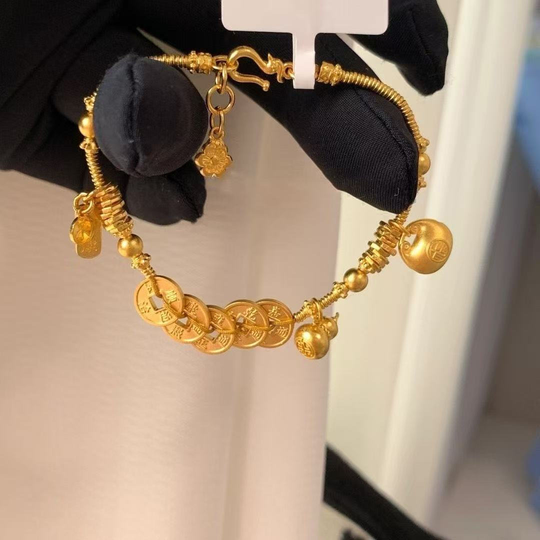 Ancient French Shajin Broken Gold Coin Fortune Bag Bracelet Women's Niche Bracelet Lucking Transferring Bracelet 2025 New