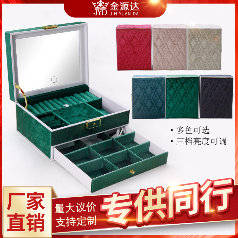 Large Capacity with LED Light Multi-function with Cosmetic Mirror Velvet Jewelry Box Ring Necklace Jewelry Ornaments Storage Box
