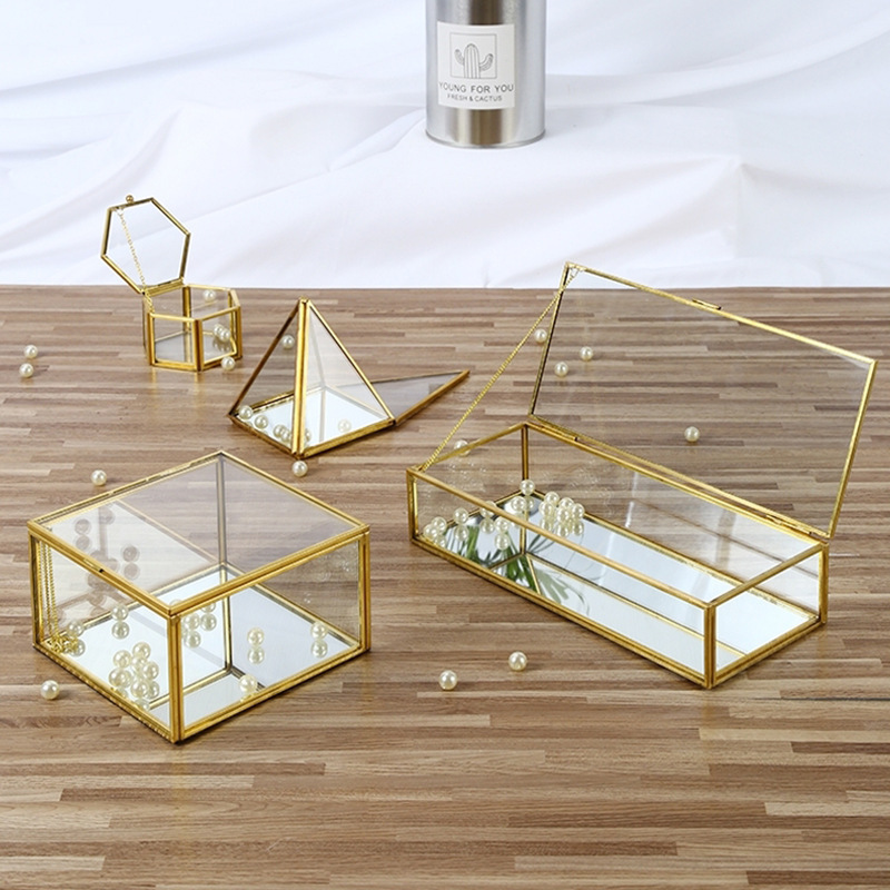 Wholesale European Transparent Glass Jewelry Box Anti-Oxidation Jewelry Box Retro Jewelry Display Crystal Desktop Storage Box