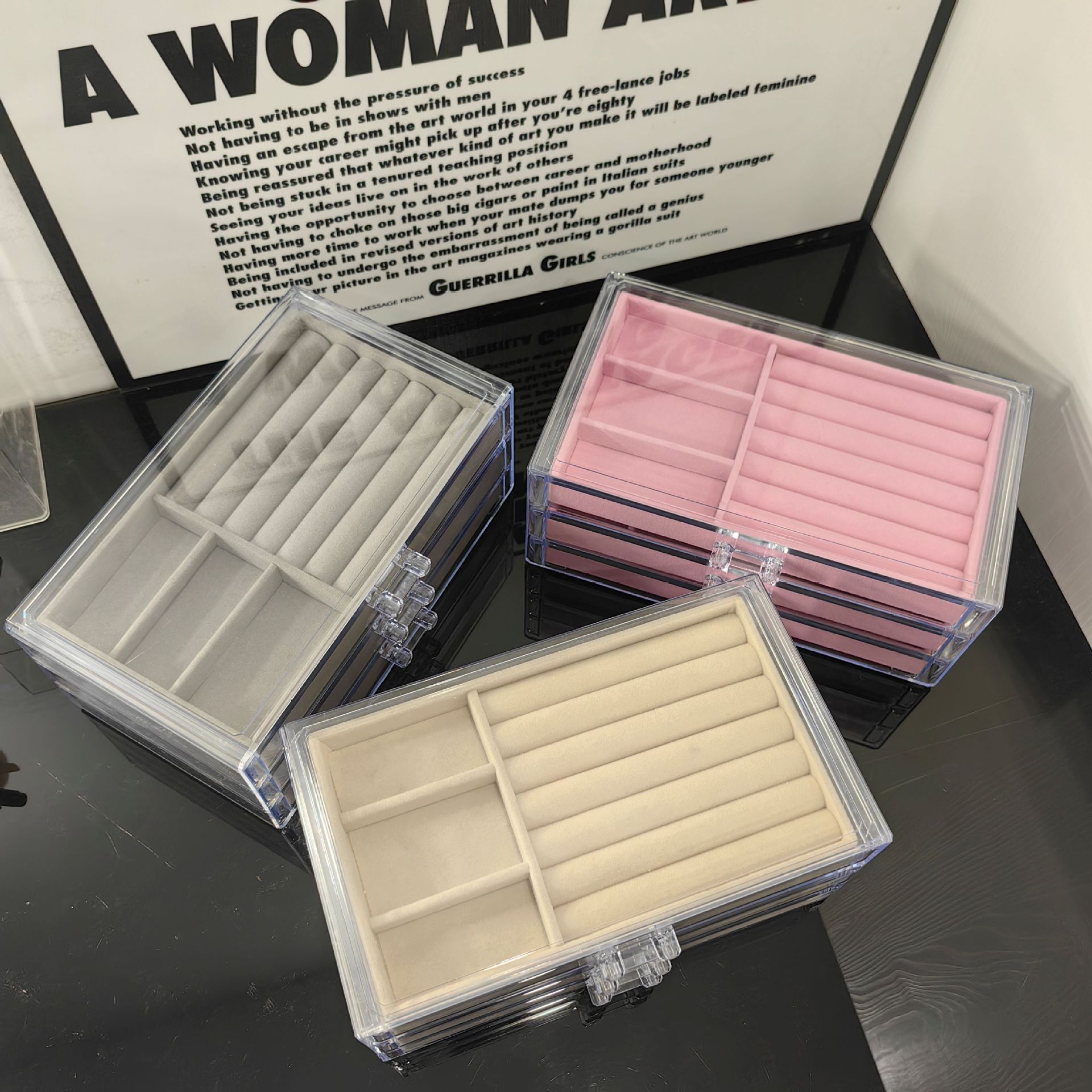 Anti-oxidation New Acrylic Flannel Jewelry Box Multi-layer Drawer Earrings Earrings Necklace Ring Jewelry Storage Box