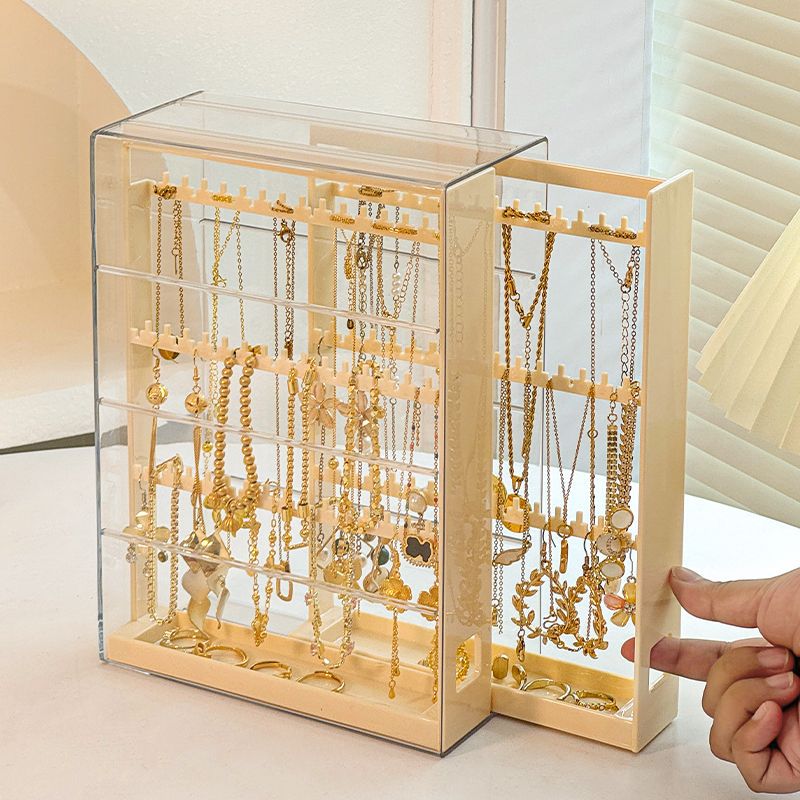 Gold Jewelry Storage Box Dust-proof Pull-out Anti-oxidation Earrings Necklace Ring Display Stand Desktop High-end Light Luxury