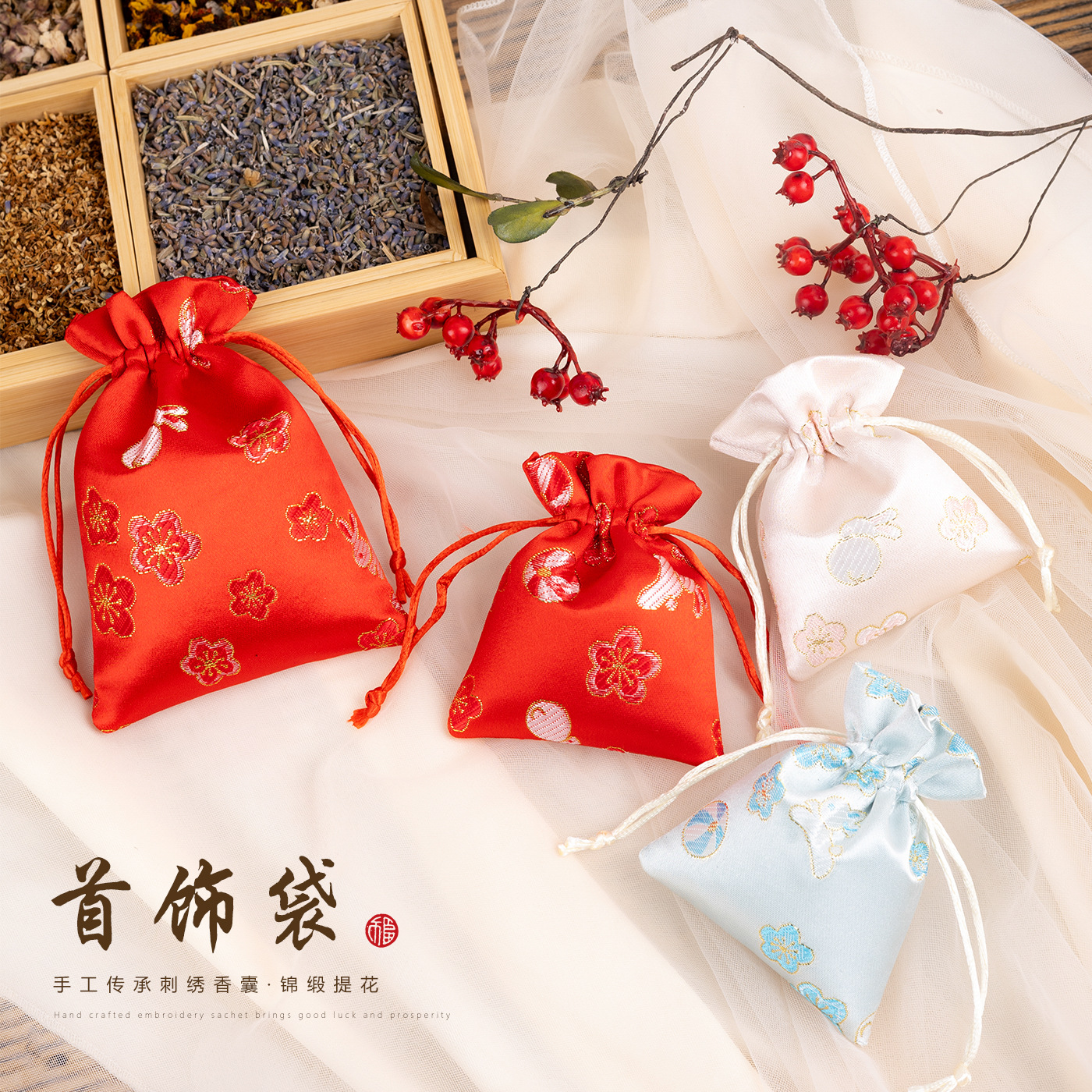 Chinese-Style Brocade Small Drawstring Pouch for Storing and Packaging Gifts, Jewelry, Bracelets, and Cultural Items