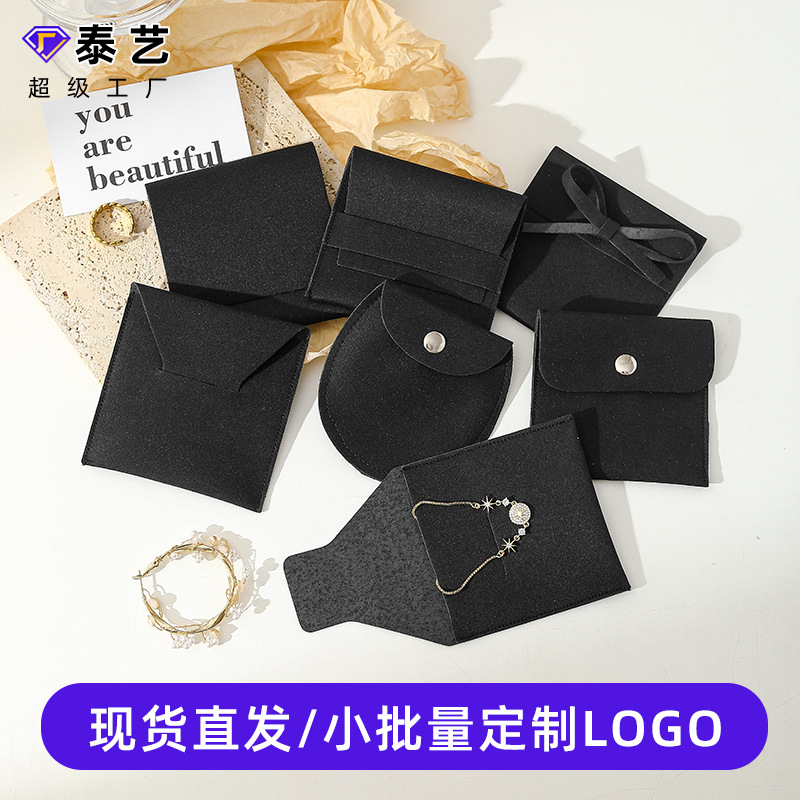 Small batch custom LOGO black flannel bag jewelry bag anti-oxidation button cloth bag jewelry storage bag