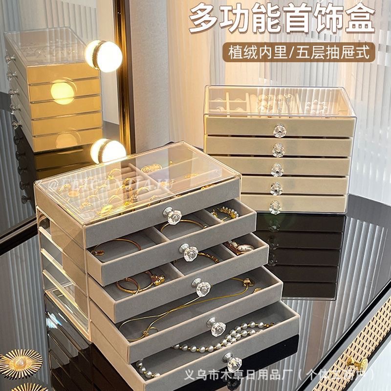 Xi high-grade velvet transparent jewelry box necklace ring earrings anti-oxidation storage box large capacity jewelry box