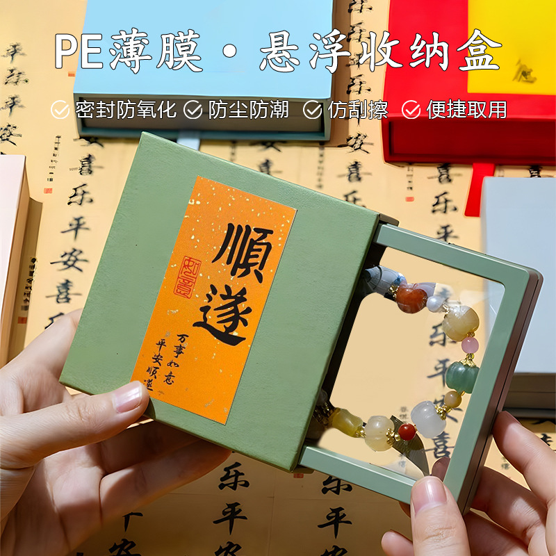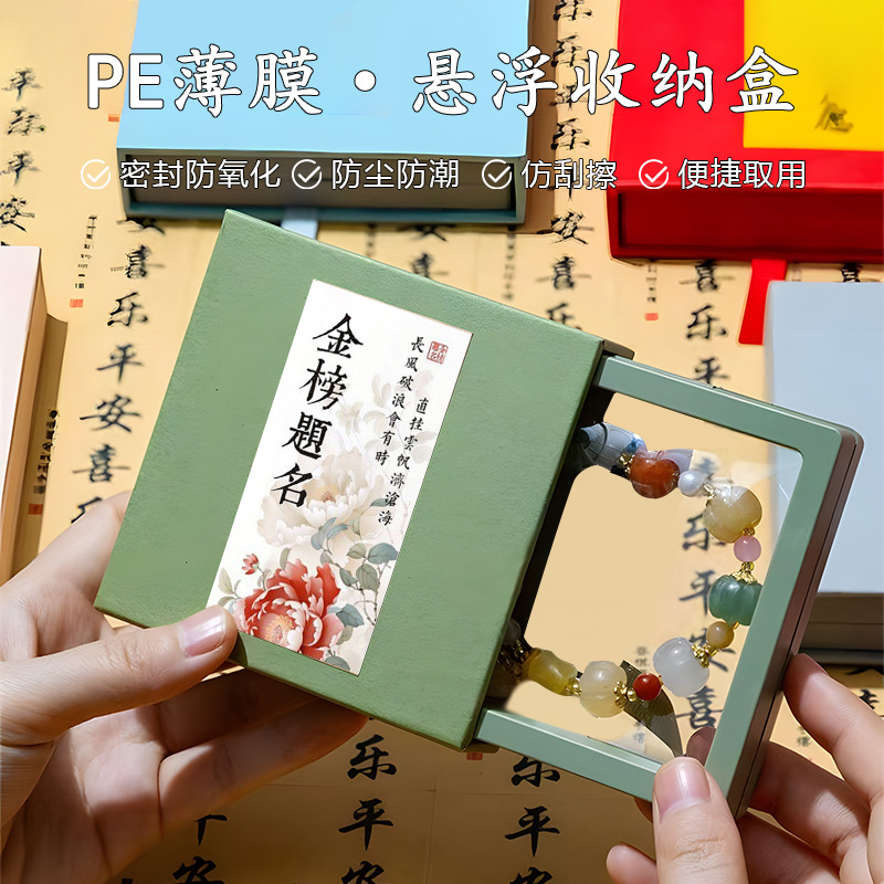 Pe Film Storage Box Jewelry Display Box Bracelet Jewelry Packaging Sealed Anti-Oxidation Transparent Film Suspension Box