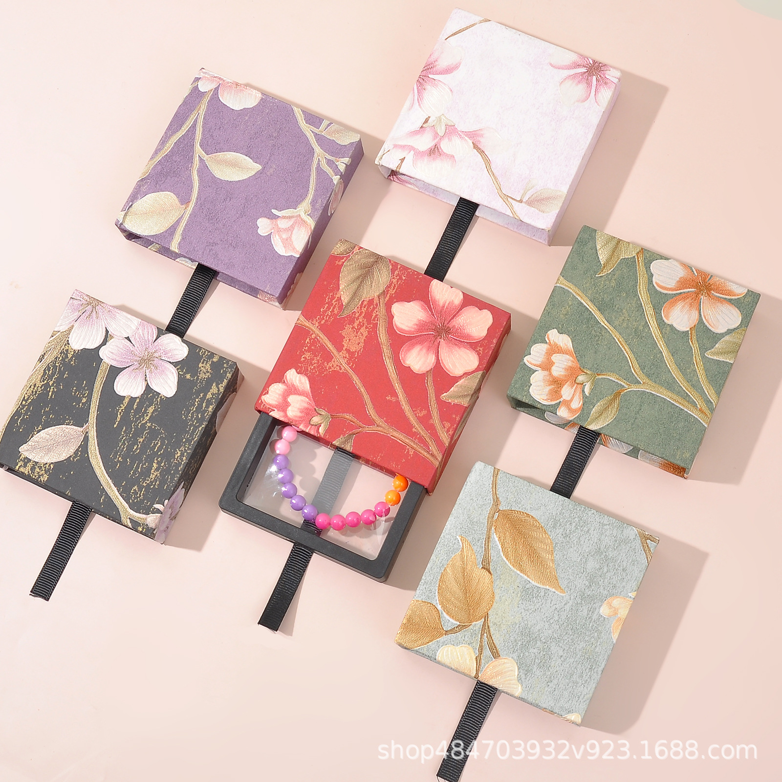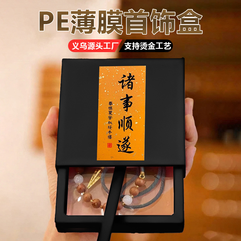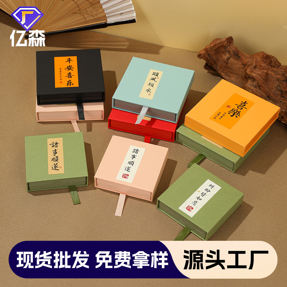 Chinese Style Bracelet Packaging Box Anti-Oxidation Wearable Necklace Ring Earrings Pe Film Box Pull-Out Jewelry Box Wholesale