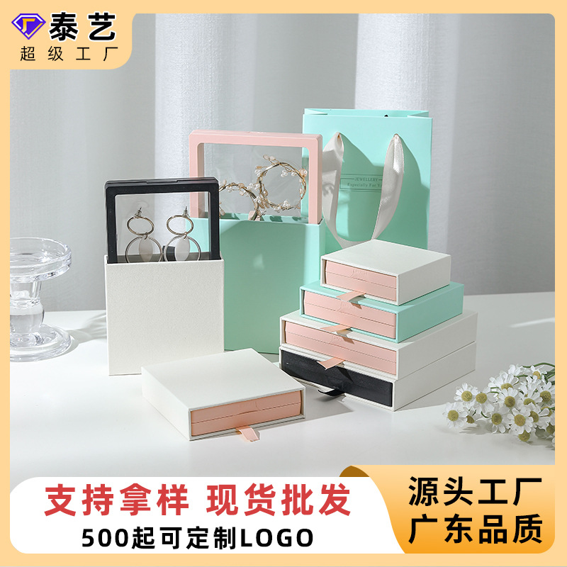 Dopamine Contrasting Color Drawer Suspension Box Anti-Oxidation Pe Film Pull-Out Jewelry Box Jewelry Packaging Box Factory Wholesale