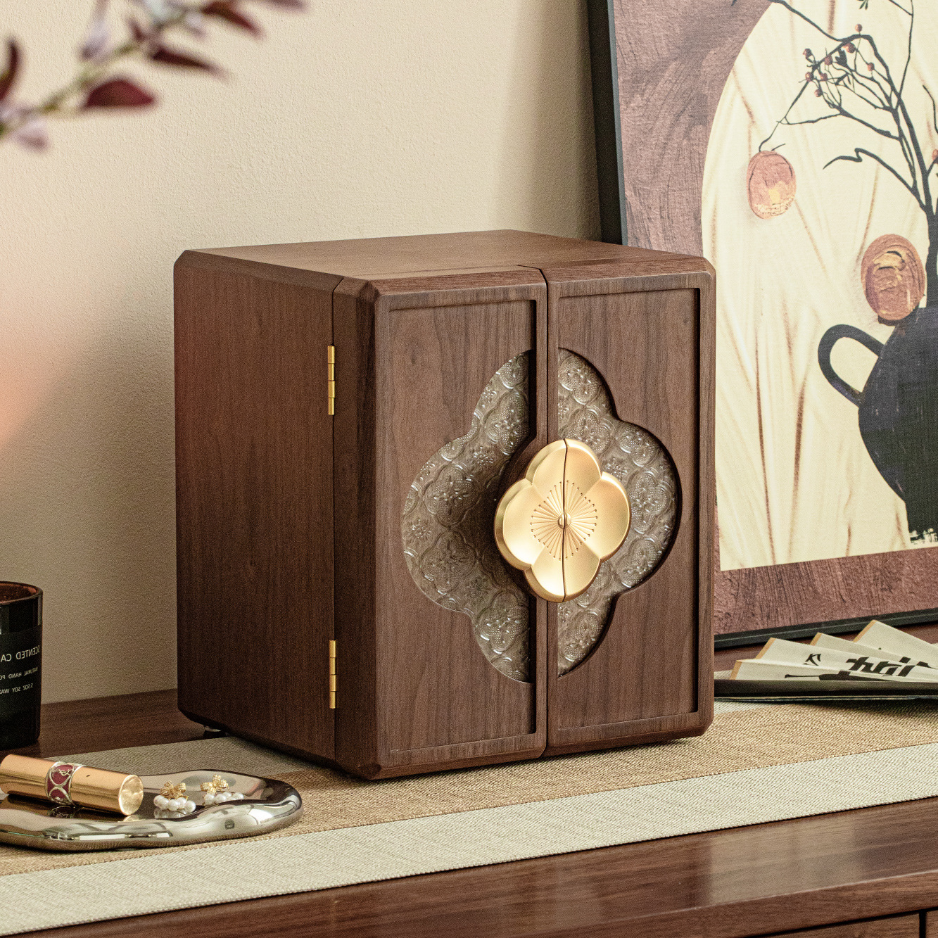 Jewelry Storage Box Desktop Large-Capacity Multi-Layer Drawer Walnut Solid Wood High-End Jewelry Storage Box