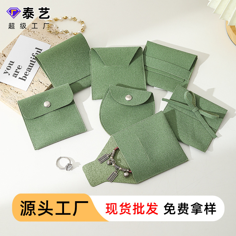 Green Flannel Bag Jewelry Jewelry Bag Anti-oxidation Snap Bag Thick Fleece Ring Flip Jewelry Storage Bag
