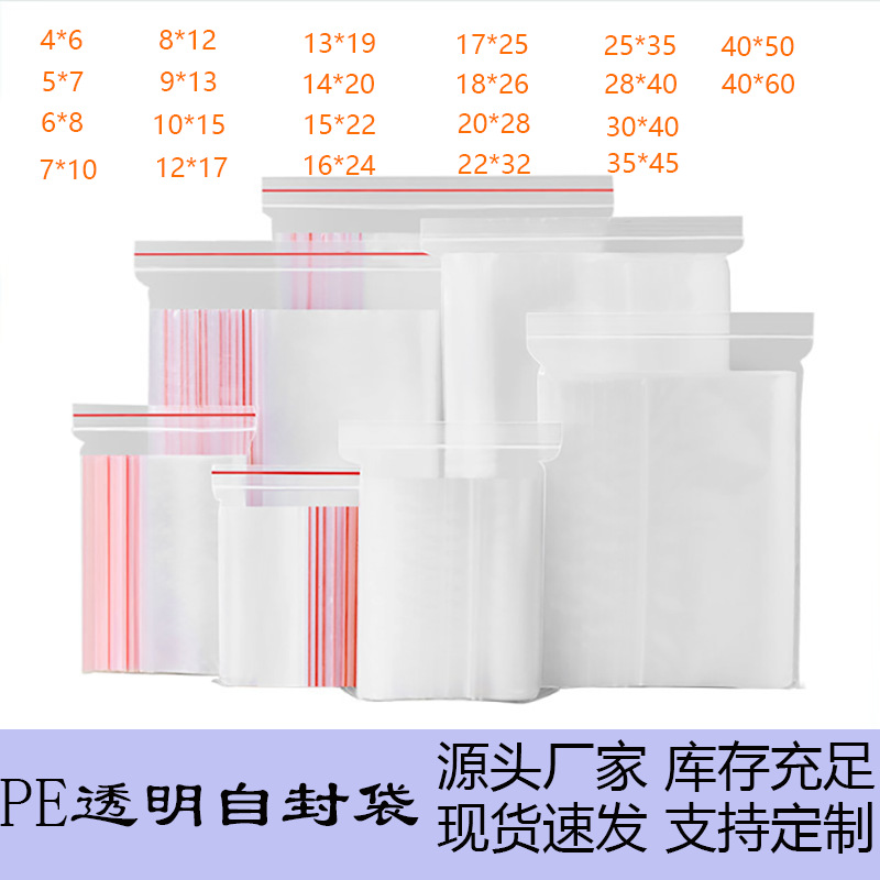 Ready Stock Pe Clothing Packaging Bags, Transparent Self-Adhesive Bags, Jewelry Sealing Zipper Plastic Self-Sealing Bags, Daily Necessities Sealing Bags
