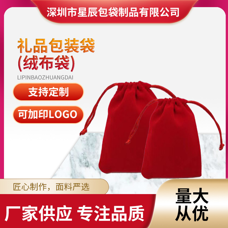 Drawstring velvet bag commemorative coin drawstring bag mobile phone jewelry flannel red plate play bag small cloth bag customization
