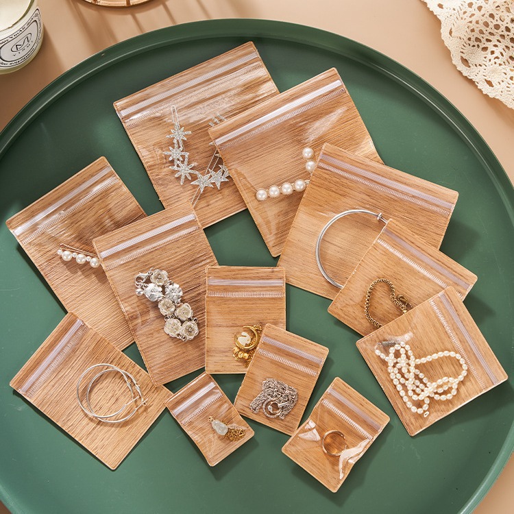 PVC Storage Bag Handstring Bracelet Jewelry Jade Jewelry Jewelry Bag Wood Grain Dustproof Sealed Bag Wholesale