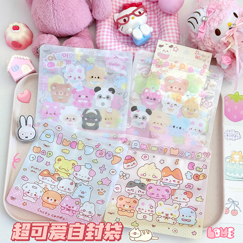 Cute Cartoon Animal Ziplock Bag Jewelry Snack Gift Biscuit Mask Seal Bag Black Pen Candy Ziplock Bag