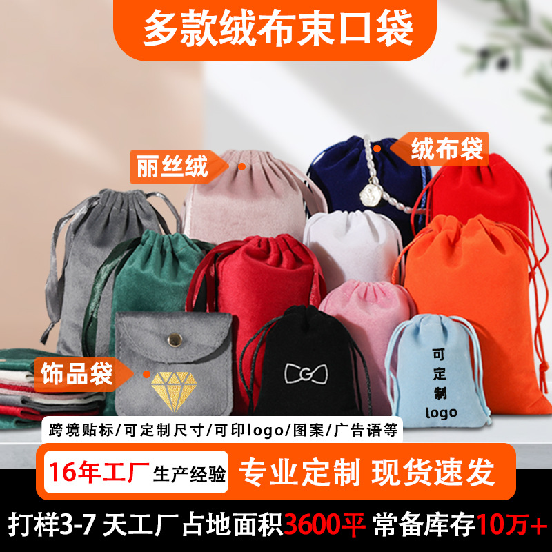 Velvet Bag Custom Cross-Border Velvet Jewelry Drawstring Bag Velvet Gift Bag Jewelry Packaging Flocking Drawstring Bag
