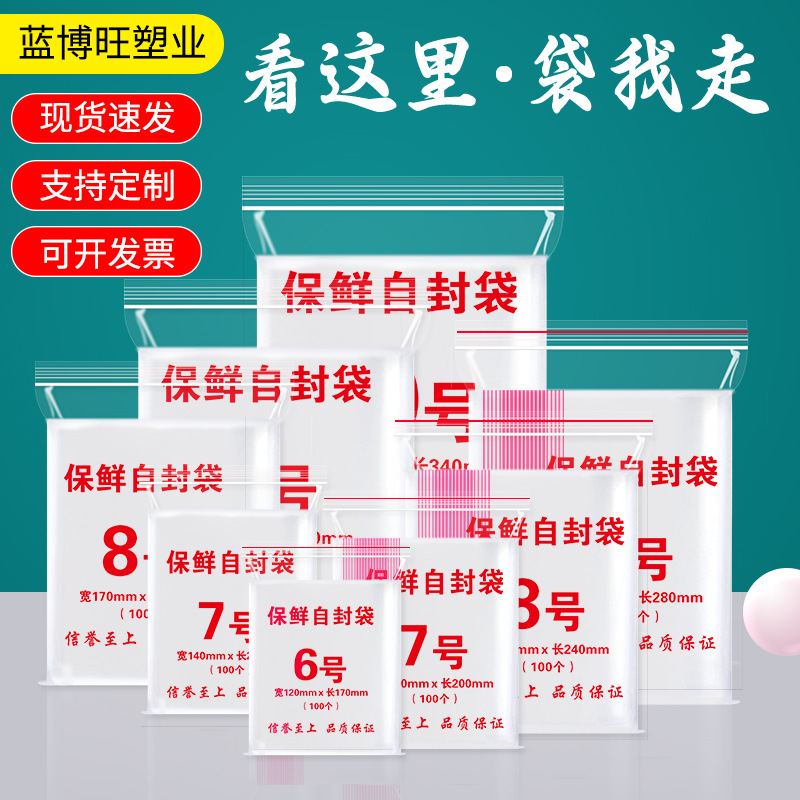 Spot transparent pe self-sealing bag thickened food fresh-keeping sealed bag plastic sealing bag jewelry packaging bag can be printed