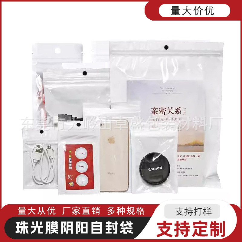 in stock self-sealing bag mobile phone case data line jewelry translucent packaging bag pearl film yin and yang bone bag wholesale
