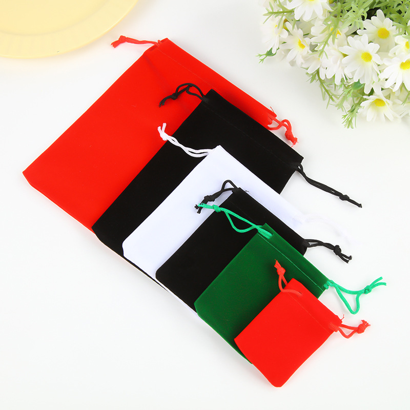 Drawstring drawstring velvet bag flocking jewelry gift glasses headset comb cosmetic packaging bag wholesale printed logo