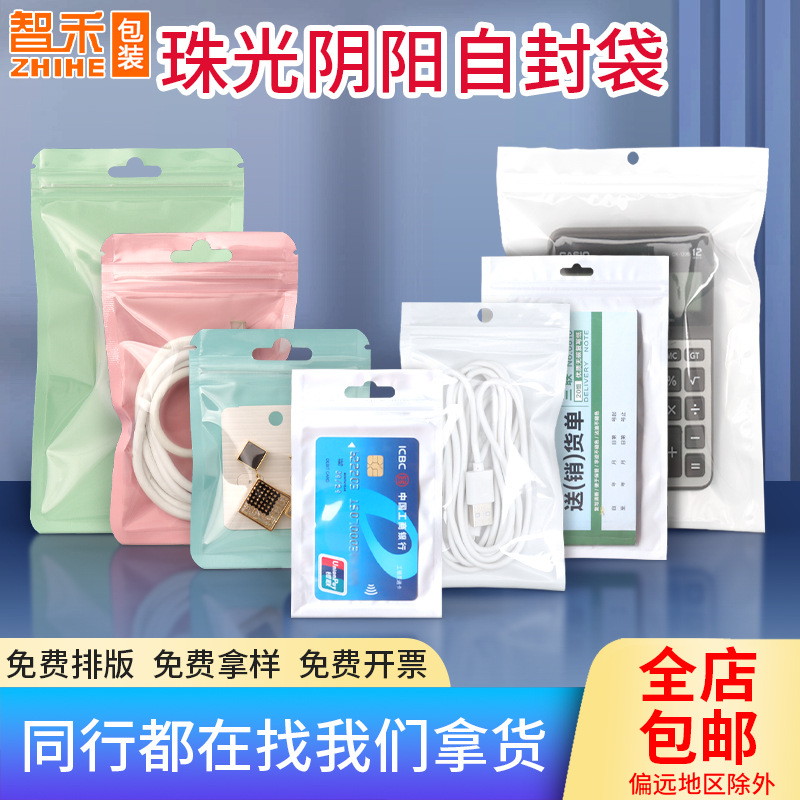 Pearlescent Film Yin and Yang Bone Bag Mobile Phone Shell Data Line Jewelry Self-sealing Bag Mask Packaging Bag Translucent Pearlescent Bag