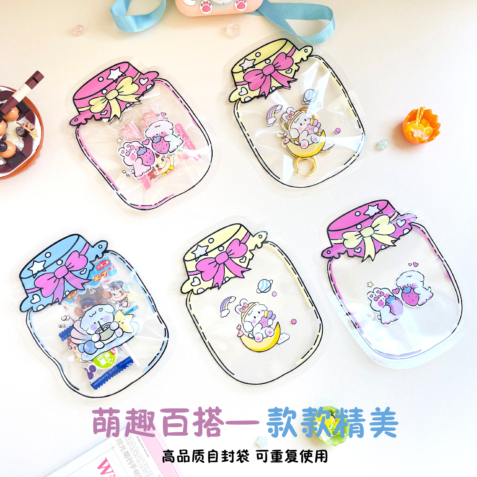Tiktok Cute Sealed Bags Universal Accessories Snacks Candy Hair Tie Packaging Bags Cartoon Cute Self-Sealing Bags Plastic Bags