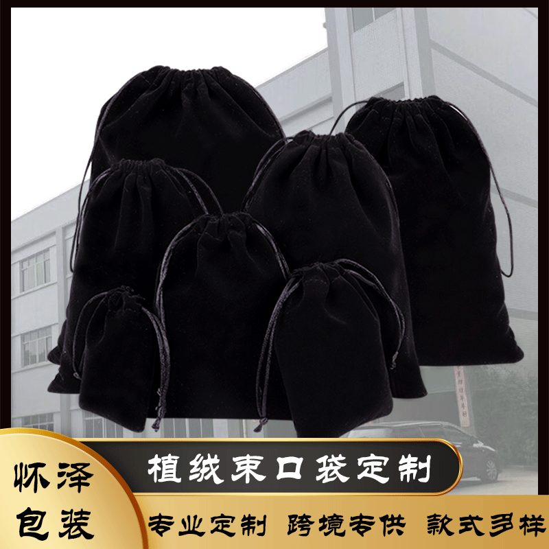Velvet Bag Wholesale Black Jewelry Earphone Storage Bag Jewelry Drawstring Bag in Stock High-End