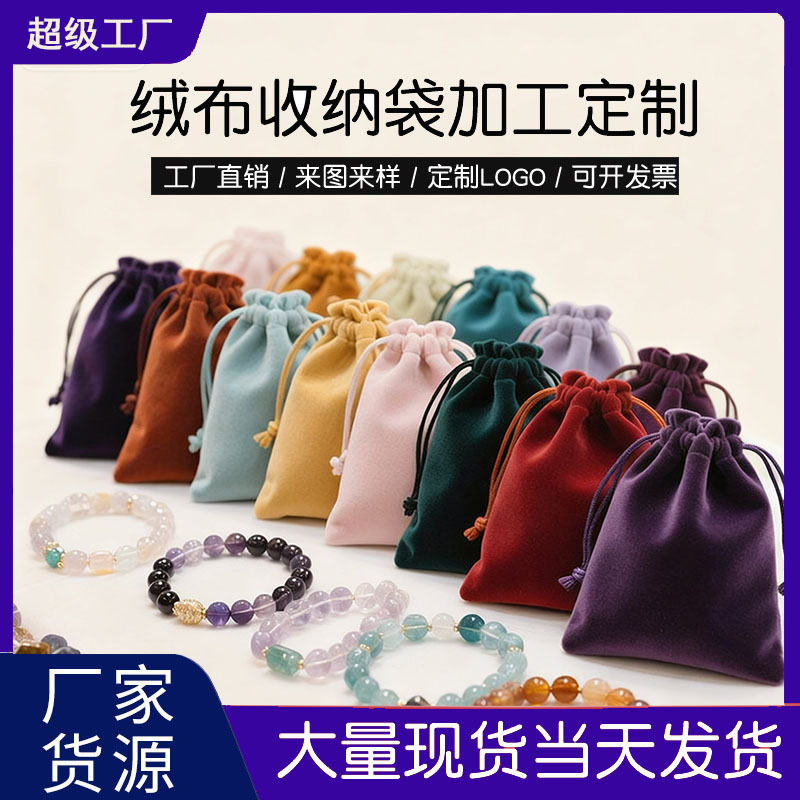 Drawstring drawstring velvet bag flocking jewelry gift glasses headset comb cosmetic packaging bag wholesale printed logo
