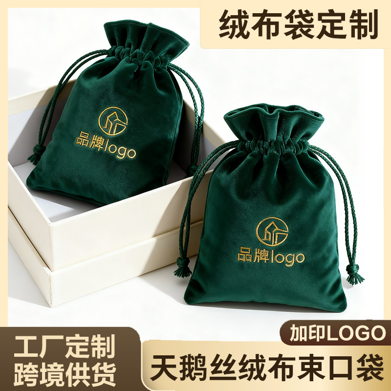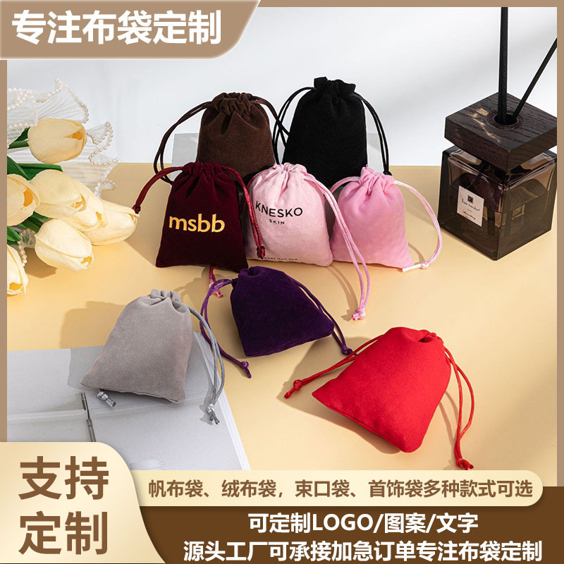 Source Manufacturer Custom-Made Drawstring Velvet Flap Pocket Pants Jewelry Packaging and Storage Velvet Bag Can Be Printed with Logo