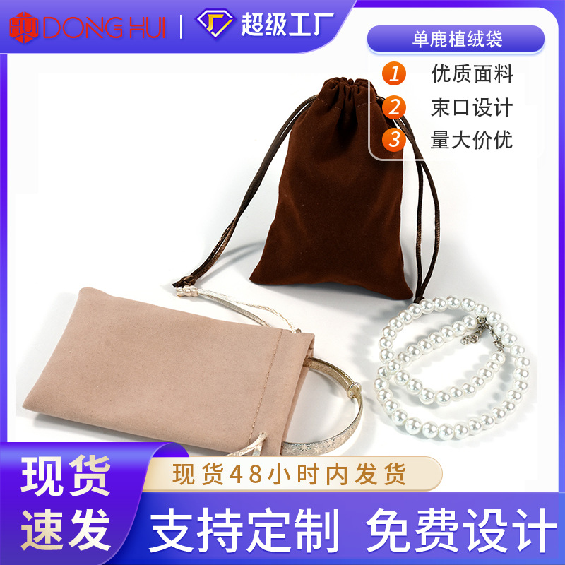 SOURCE Factory new wholesale single deer flocking drawstring pocket solid color flannel jewelry bag jewelry packaging storage bag