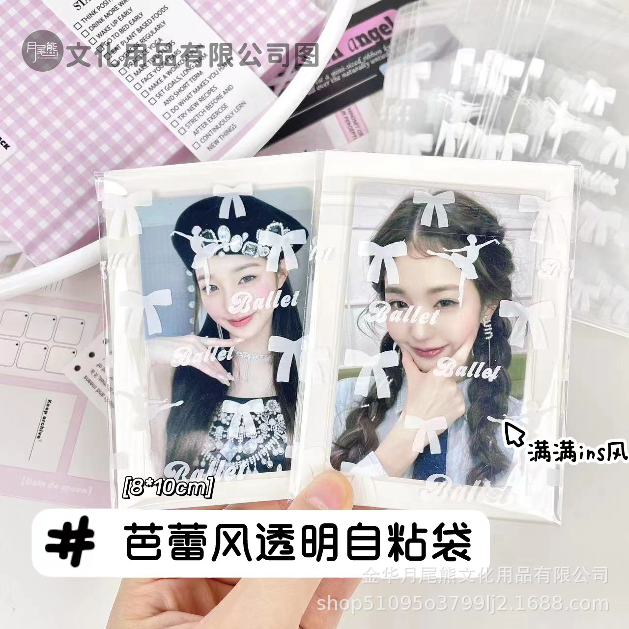 ins style ballet style transparent ziplock bag small card holder sealing sticker jewelry storage self-adhesive bag small card protective bag