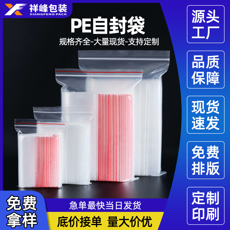 in stock pe self-sealing bag transparent sealed bag jewelry thickened plastic packaging bag clothing sub-packaging bag sealing bag printing