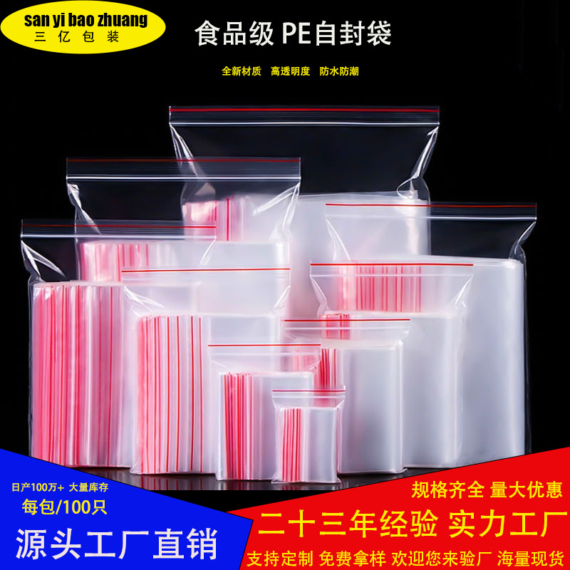 Transparent Pe Thickened Self-Sealing Bags, Food Preservation Bags, Clothing and Accessories Large Plastic Bags, Packaging Bags, Printable
