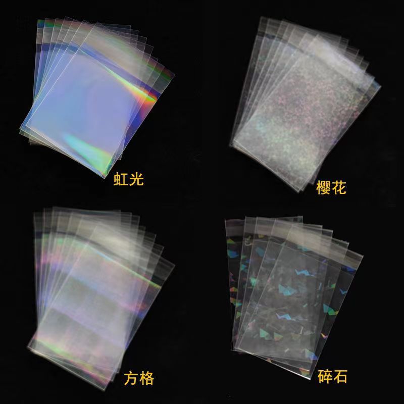 Thickened Glass Shattered Laser Transparent Yum Self-sealing Bag First Jewelry Self-adhesive Game King Card Badge Protective Cover 50