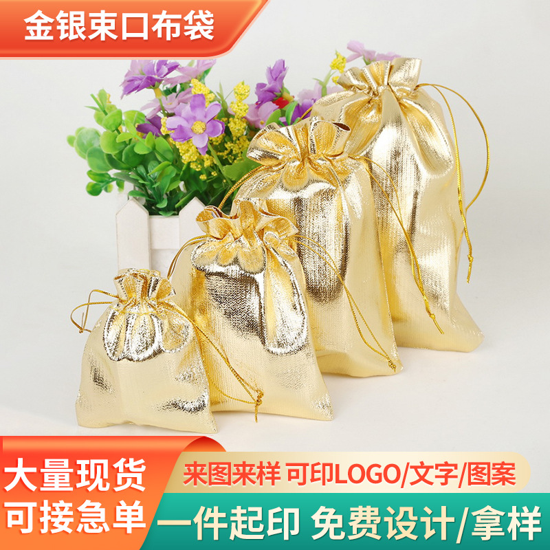 Cross-border supply of gold and silver cloth bags red gold cloth bag jewelry jewelry text play gift storage packaging bags in stock