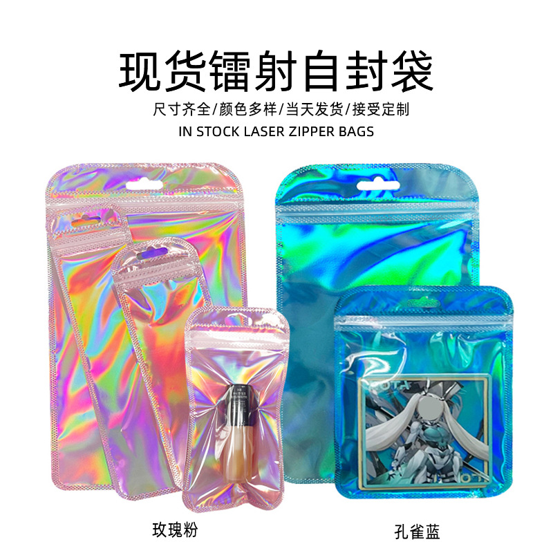 Translucent Colorful Laser Packaging Bag Cosmetic Brush Makeup Egg Plastic Bag Holographic Magic Flash Laser Ziplock Bag
