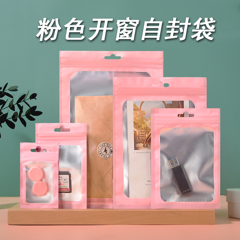 ins style pink ziplock bag frosted color aluminized window Yin and Yang aluminum foil bag jewelry wear nail bag