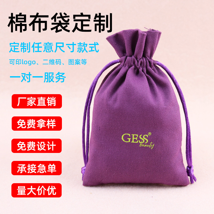 Factory direct bunched canvas bag jewelry gift canvas drawstring bag cotton canvas bag logo bag storage