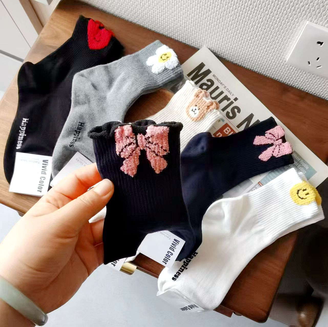 Cross-border generation hair four seasons tube women's cotton socks simple cute bow flower vividcolor South Korea socks